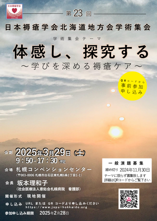 | 参加登録 | 日本褥瘡学会北海道地方会ホームページからの事前参加登録となります。 ※当日受付は致しません。 |